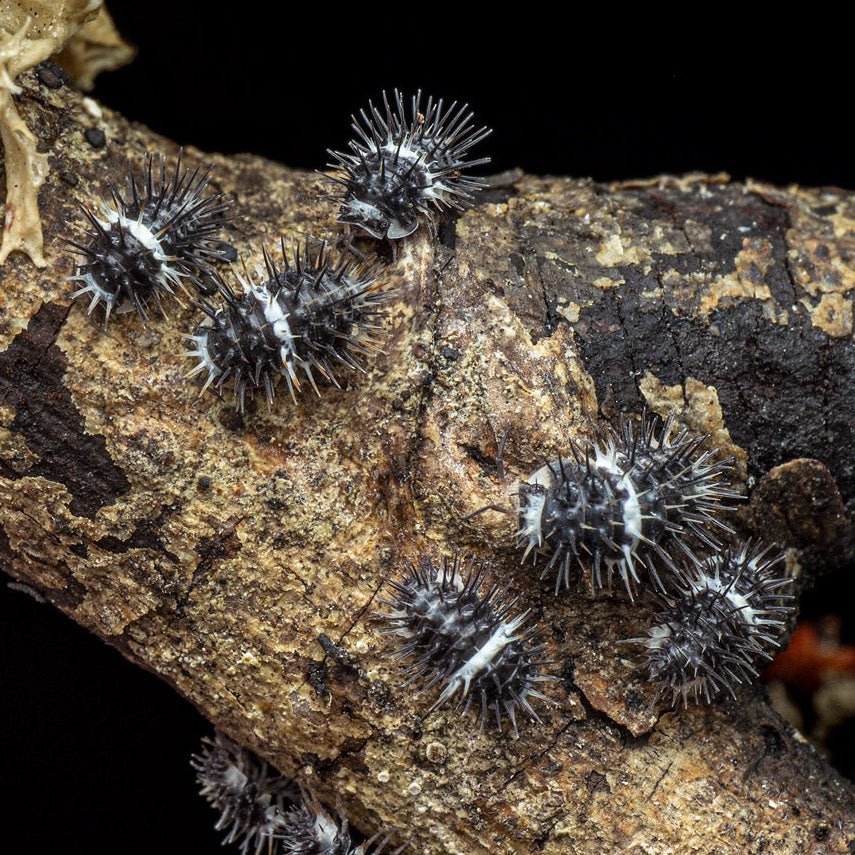 Isopode tropical rare et texturé, grimpeur et spectaculaire. Demande chaleur, humidité et terrarium vertical.