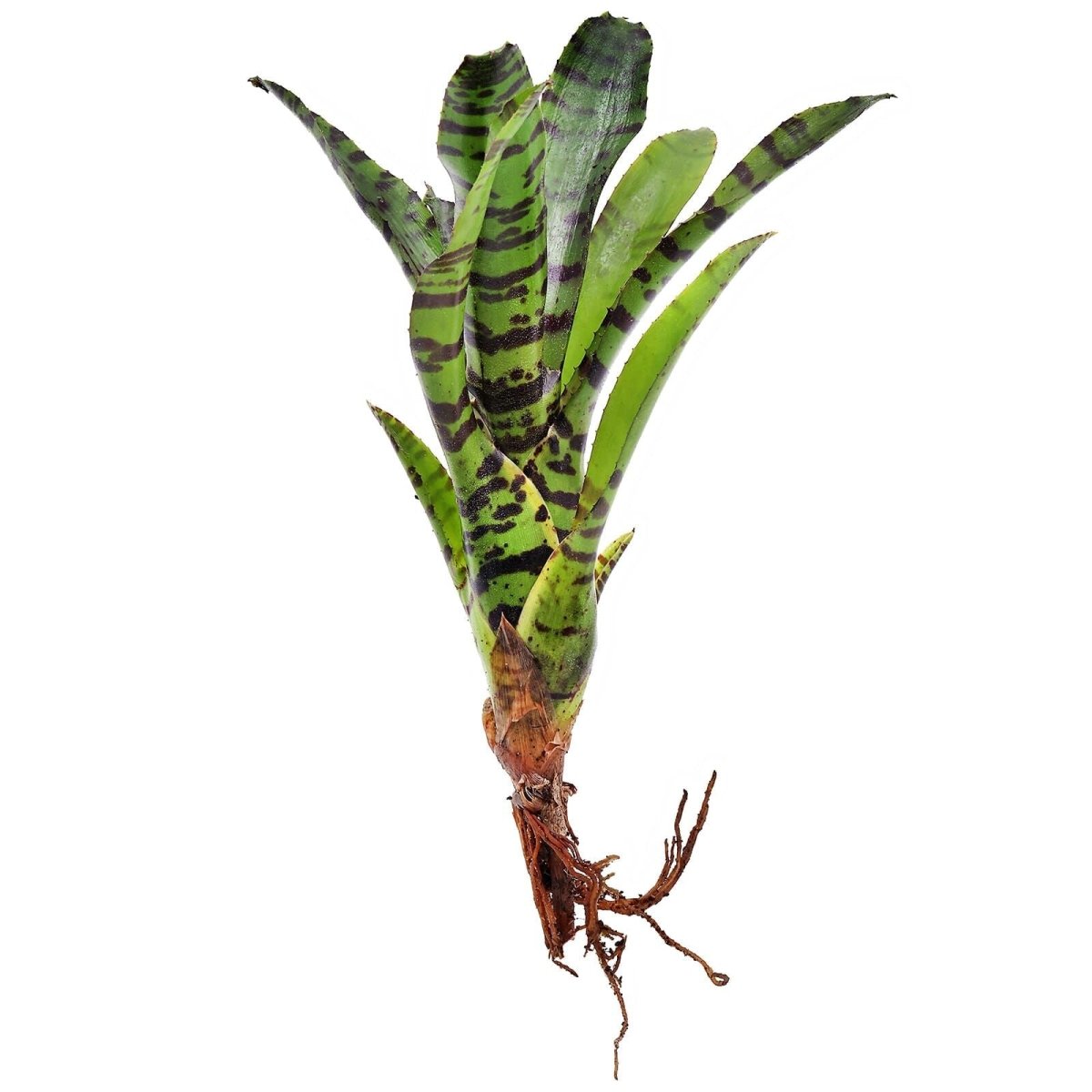 Une broméliacée miniature rare au feuillage zébré et coloré. Compacte, graphique et facile à entretenir — parfaite pour terrarium tropical humide.